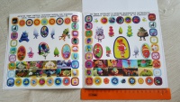 Альбом квадратный, чуть меньше листа а4. Наклейки глянцевые, разного размера, хорошо отделяются и приклеиваются. Вклеиваем в одноименную раскраску. Фото всех разворотов альбома с наклейками.