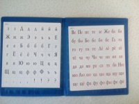 Папка из клеенки, твердая, внутри 8 листов из тонкой глянцевой бумаги с буквами, слогами, цифрами и т.п. В садике выдали старые кассы букв, сказали дополнить к сентябрю недостающими буквами, можно из наборов, можно самим распечатать. Так вот этот набор оказался совершенно бесполезен: букв мало, карточки маленькие, еще...