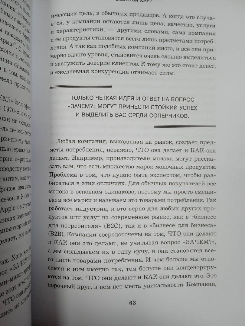 Книга о том редком типе лидерства, которое позволяет достигать неприлично большого влияния, и о том, как его в себе взрастить. В качестве примеров приводятся Стив Джобс, Мартин Лютер Кинг-младший, Генри Форд и др. Одна из ключевых идей: если вы знаете, зачем создаете товар, услугу или социальный проект, то естественны...