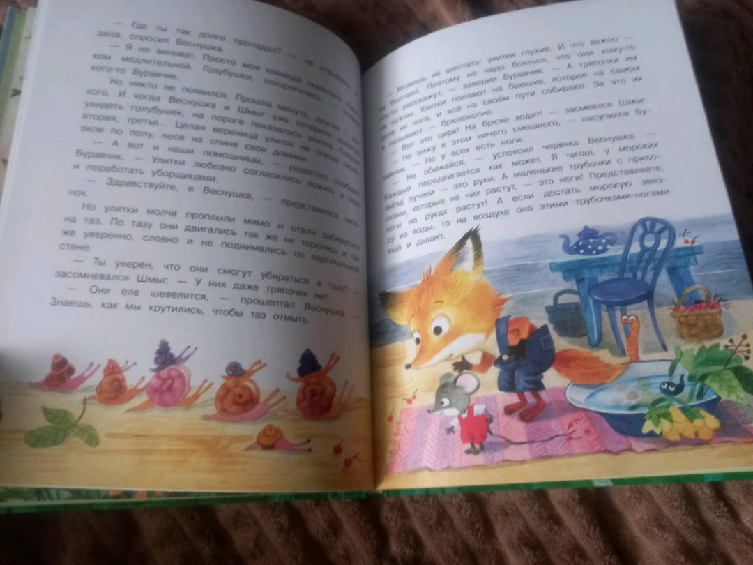 Какая это красивая книга, видно по фото, тут можно смотреть любую иллюстрацию, и она тебе будет отрываться летним теплом и обаянием героя. Это не первая книга про Веснушку, но читается вполне самостоятельно. История про любопытного лисенка не оставит равнодушными юных читателей