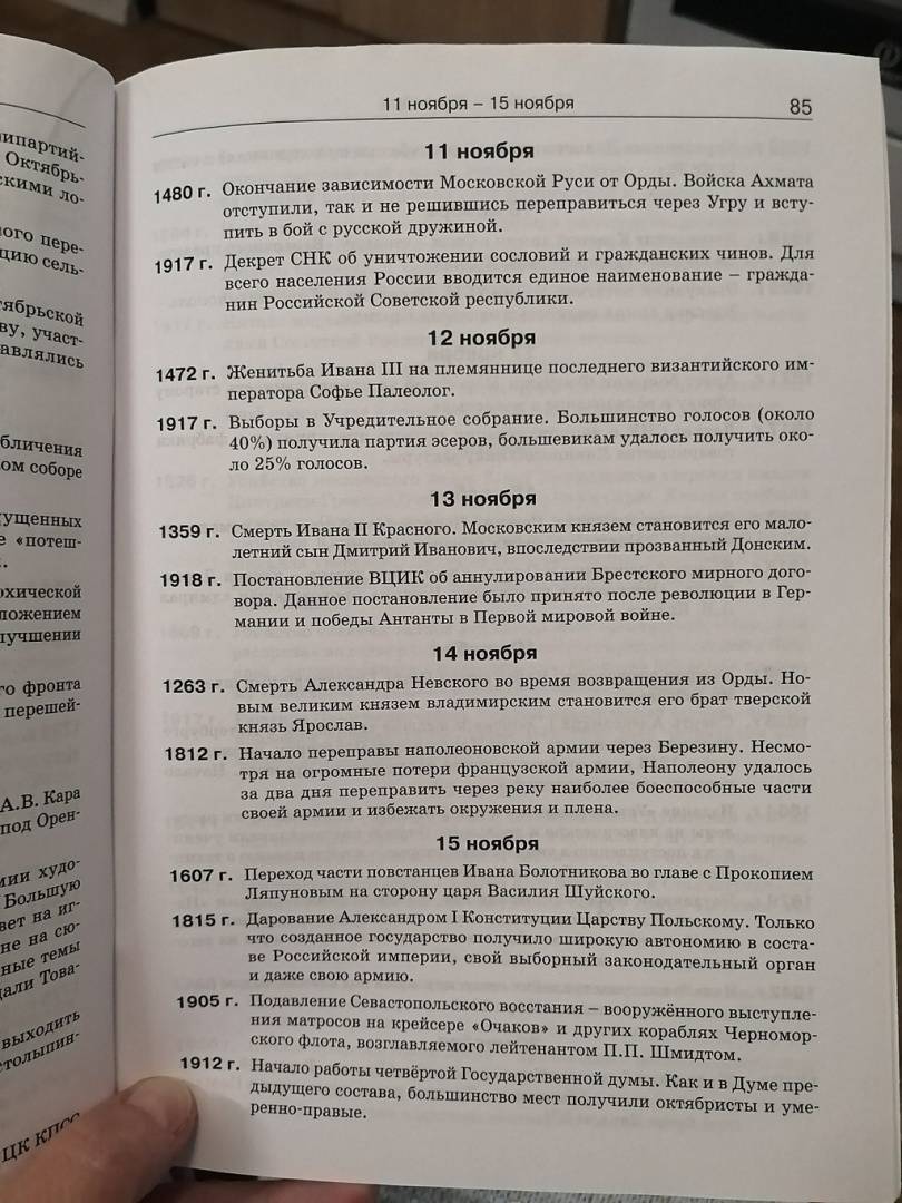 Данный календарь очень помогает при изучении истории России. У нас уже есть "Школьный справочник по истории России" издательства "Вако", а этот календарь более полно раскрывает события и вехи нашей истории. Хочу отметить список сокращений приведенный в календаре, он очень удобен, так как многие наз...