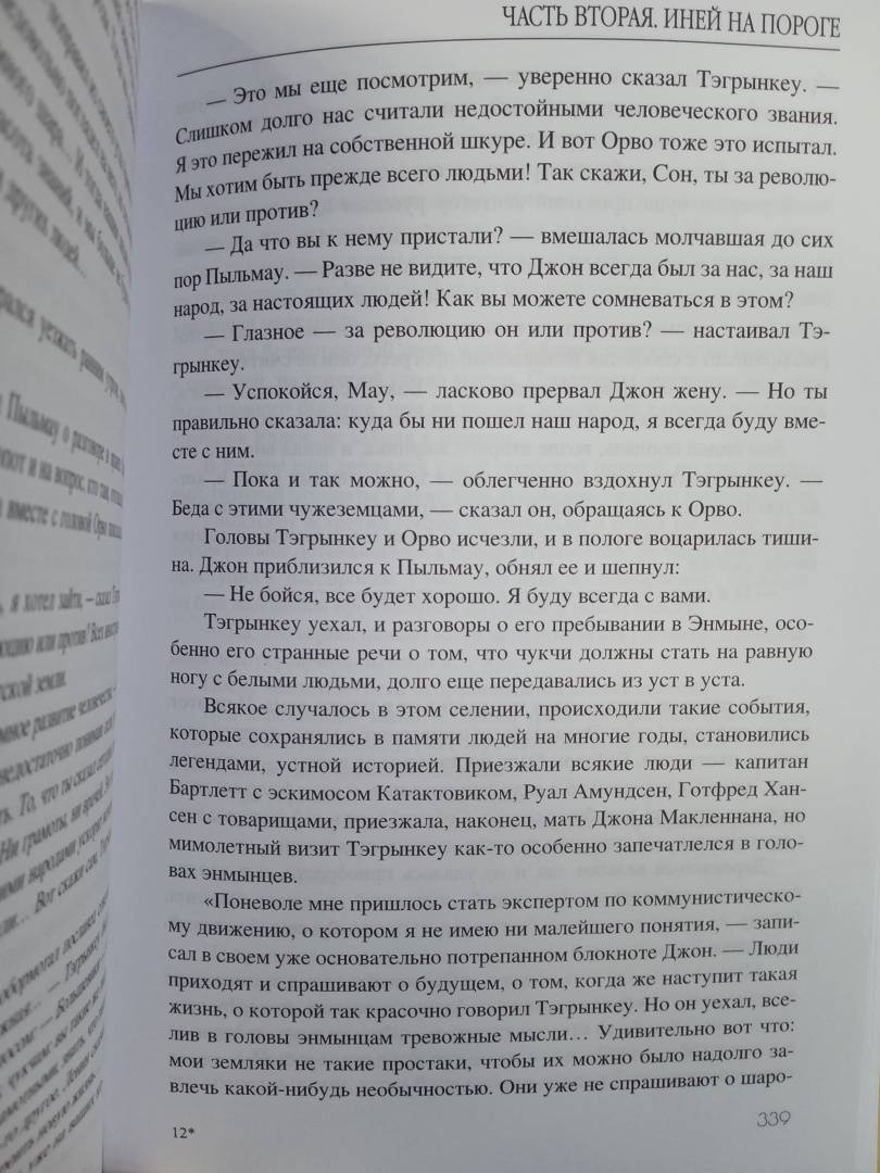 Очень хорошая книга для тех, кто любит романы-бытописания. Роман посвящен жизни северных народов до прихода Советской власти. Вот так чукчи охотились, вот такие у них были законы, вот так хоронили умерших, вот так торговали с белыми... Но перед нами не сухой документальный рассказ, все это показано через сюжет, взаимо...