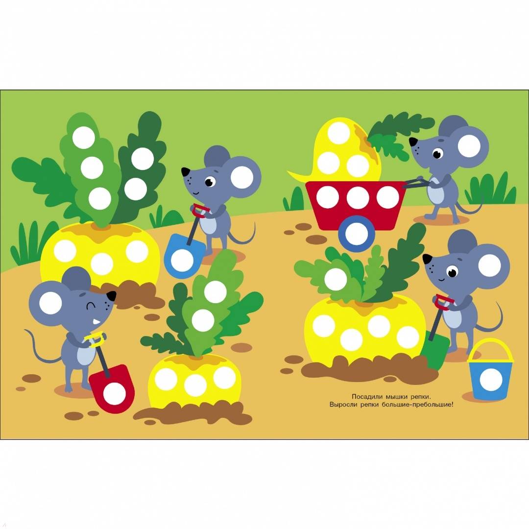 “Ясельки” – серия развивающих книжек для самых маленьких читателей. Приклеивать на картинки кружочки очень увлекательное и полезное занятие. Выбирая нужный цвет наклеек, вы можете повторить с малышом названия цветов, приклеивая кружочки – потренируете мелкую моторику рук, аккуратность и внимательнос