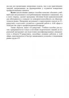 Это учебное пособие вводит студентов и преподавателей вузов в динамичный и многогранный мир IT-рекрутинга, предоставляя не просто теоретические основы, но и конкретные, адаптированные под реальный мир навыки и знания. Пособие строит мост между академическими знаниями и практическими навыками, интегр