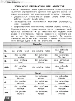 Откройте для себя мир немецкого языка с помощью нашего универсального пособия! Эта книга предлагает наглядные таблицы, которые помогут вам легко освоить имена прилагательных и артик