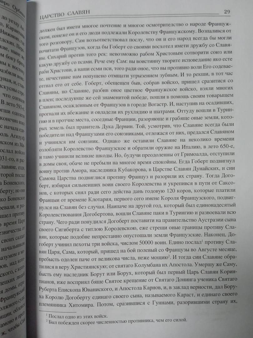 Мавро Орбини - католический монах, автор этой книги, впервые изданной в 1601 г. на итальянском языке,- принадлежал культуре Запада. Но его книга - это настоящий гимн величию славянства, торжественный и патетический, несмотря на то что автор следует тысячелетней традиции западной историографии. В сам