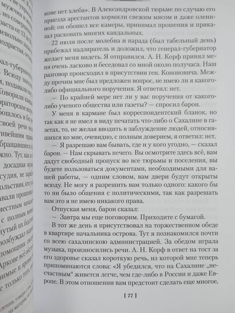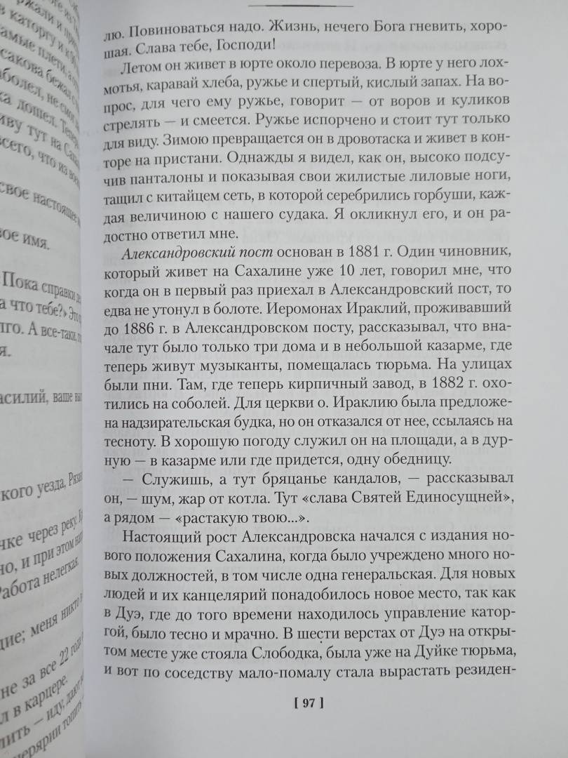 Поездка заняла восемь месяцев, писатель преодолел много тысяч верст по железной дороге и на пароходах, лошадях и лодках, несколько раз едва не погиб. Но, вопреки ожиданиям читателей, Чехов привез с Сахалина не роман, а книгу "Остров Сахалин". Эта книга - одновременно путевые очерки и всестороннее исследование уникальной истории острова и судеб его жителей - коренного населения и ссыльнокаторжных.