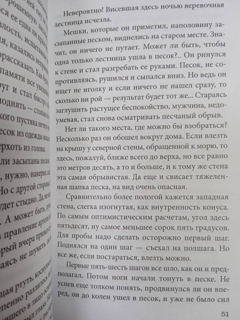 "Женщина в песках" - культовое произведение знаменитого японского прозаика и драматурга Кобо Абэ. Притча, фантастика, гротеск, философское размышление, психологический эксперимент, метафорическая исповедь органично слились в этом простом и лаконичном повествовании, затягивающем, как зыбучий песок.