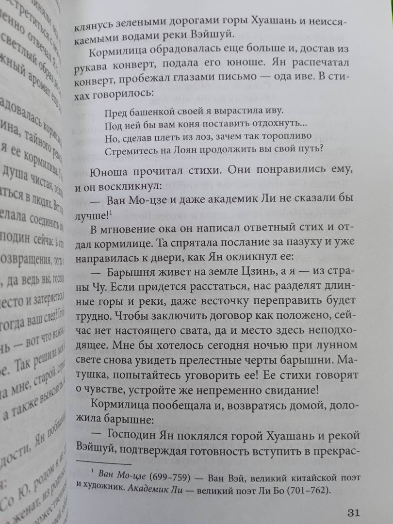 Роман Ким Ман Чжуна "Облачный сон девяти", созданный в конце XVII века, долгое время оставался любимейшей книгой в Корее. Для автора, отпрыска аристократической семьи, необычайно важна была добродетель сыновней почтительности, и этот волшебный роман он написал, чтобы утешить свою овдовевшую мать, которую вынужден был покинуть, отправляясь в изгнание из-за политических перипетий.