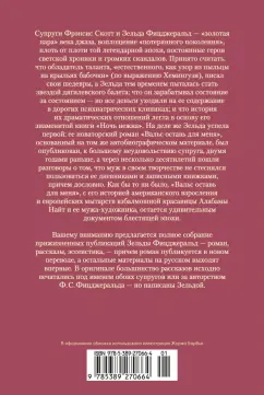 Супруги Фрэнсис Скотт и Зельда Фицджеральд - "золотая пара" века джаза, воплощение "потерянного поколения", плоть от плоти той легендарной эпохи, постоянные герои светской хроники и громких скандалов. Принято считать, что обладатель таланта, "естественного, как узор из пыльцы на крыльях бабочки" (по выражению Хемингуэя), писал свои шедевры, а Зельда тем временем пыталась стать звездой дягилевского балета; что он зарабатывал состояние за состоянием - но все деньги уходили на ее содержание в дорогих психиатрических клиниках; и что история их драматических отношений легла в основу его знаменитой книги "Ночь нежна". На деле же Зельда успела первой: ее новаторский роман "Вальс оставь для меня", основанный на том же автобиографическом материале, был опубликован, к большому неудовольствию супруга, двумя годами раньше, а через несколько десятилетий пошли разговоры о том, что муж в своем творчестве не стеснялся пользоваться ее дневниками и записными книжками, причем дословно. Как бы то ни было, "Вальс оставь для меня", с его историей американского взросления и европейских мытарств взбалмошной красавицы Алабамы Найт и ее мужа-художника, остается удивительным документом блестящей эпохи.