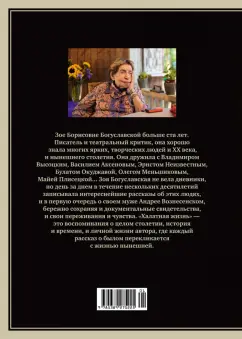 В этой книге очень много имен известных людей: актеры Высоцкий, Табаков, Меньшиков, режиссер Любимов, писатели Аксенов, Солженицын, Битов, художники, политики, музыканты - книга писательницы Зои Богуславской подлинная энциклопедия культурной жизни Москвы (и гораздо шире) за последние 80 лет. Столетняя Зоя Борисовна описывает лишь то, чему сама была свидетелем и в чем участвовала. Последнюю четверть века она ведет записи, хронику самых интересных событий и попутно вспоминает свою жизнь. Эти записи уникальны. То, о чем она рассказывает, нигде больше прочитать нельзя, и никто другой об этом не расскажет.