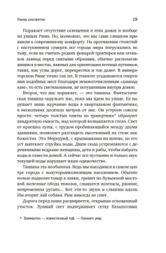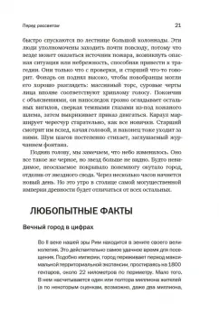 Древний Рим времен расцвета империи похож на современный мегаполис гораздо больше, чем мы могли бы подумать. Полтора миллиона его жителей сталкивались с теми же проблемами, что и их наследники две тысячи лет спустя: дороговизна жилья и дорожные пробки, наплыв иммигрантов и необходимость "подмазывать" городских чиновников… Автор предлагает нам "накрыться шапкой-невидимкой" и провести в Риме целый день, от рассвета до заката, в 115 году нашей эры: потолкаться на людной улице и заглянуть в Колизей, посетить судебное слушание и роскошные термы, отведать изысканных блюд и насладиться беседой на званом ужине. И закончить день на любовном ложе - здесь тоже за две тысячи лет ничего не изменилось.
