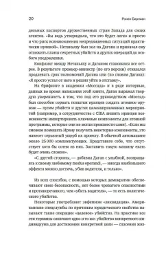 Создание государства Израиль в 1948 году привело к созданию его разведки - самой смертоносной в мире. В ее арсенале всегда было особое оружие: политические убийства. "Целевые" убийства применялись бесчисленное количество раз, как против больших, так и малых врагов, в том числе превентивно. Эта книга основана на ранее тщательно засекреченных архивных материалах и интервью, ни одно из которых не получило одобрения военной элитой Израиля. Известный военный аналитик Ронен Бергман предлагает захватывающий рассказ о программах целевых убийств: об их успехах и неудачах, а также моральной и политической цене, которую пришлось заплатить тем, кто одобрил и выполнил эти миссии.