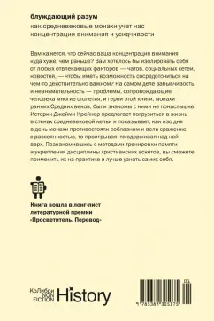 Каждый день мы неизбежно сталкиваемся с вызовами, которые бросает нам эпоха высоких технологий: заключенные в цифровую оболочку, окруженные со всех сторон экранами и завороженные алгоритмическими лентами социальных сетей, мы сами не замечаем, как наше внимание все сильнее распыляется, а время утекает сквозь пальцы. В таких условиях умение концентрироваться на чем-то одном становится настоящей суперспособностью. Однако внимательность и сосредоточение непросто давались людям во все времена. Даже средневековые христианские монахи, мастера уединения и аскетизма, порой страдали от досадной рассеянности. В своем увлекательном тексте на грани фундаментального исторического исследования и селф-хелп литературы Джейми Крейнер рассказывает, что отвлекало монахов от праведного труда и как они упражняли свое внимание и память, а также делится секретами их продуктивности, актуальными и сейчас.