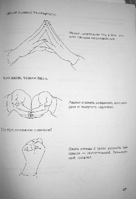 Книга посвящена играм с пальчиками. Большое количество всевозможных сюжетных игровых упражнений (есть даже игра в театр), различной степени сложности (на возраст от 0 до 6 лет) и все с интересным стихотворным комментарием и подробными рисунками. Дополнительно приводится несколько стихотворных «будилок», «усыплялок» и «хлопалок». В начале приводятся критерии оценки своевременности развития моторики рук (от 0 до 6 лет).
