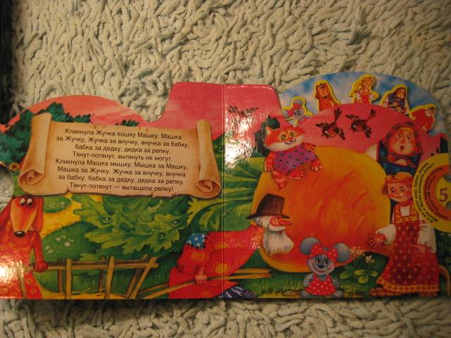 Я крайне недовольна книгой. Изменили слова давно уже всем известные с детства, вместо Кошки у них Машка. Так еще и иллюстрации размещены так, что на одной странице приходит и Жучка, и Машка и мышка и все тянут-потянут, а на картике уже давно вытянули и все сидят вокруг. Это не для маленьких детей. Все должно быть логи...