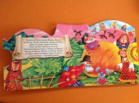 Книжка, конечно, красочная, яркая. Формат удобный, картон толстенный. Хорошо ложится в руки. Колесо крутится. Да и вообще, задумка прекрасная. Немного непонятно отсутствие Машки (кошки) на колесе. Но ребенок (1,4 года) не заметил. Возможно, позже уже обратит внимание. В общем и целом, книжку рекомендую. Ребенку нравит...