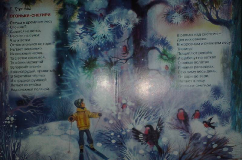 Всего 5 разворотов , всего 5 стихов о зиме, но открывая эту книжку, попадаешь, в сказочный волшебный мир матушки Зимы.Иллюстрации очень, очень! Стишки известные и малоизвестные. К примеру "Огоньки- снегири" Трутневой раньше не встречала. Книжка отлично подойдет самым маленьким. Малыши оценят неповторимые рис...