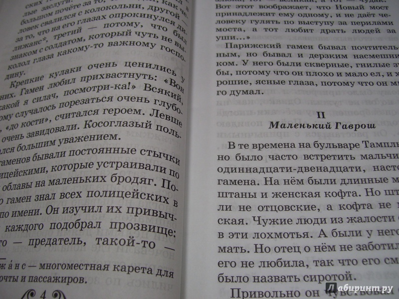 Очень разочарована переводом этого издания. Ожидала перевод Касаткиной, классический и именно тот, который рекомендую всем для первого прочтения "Гавроша".