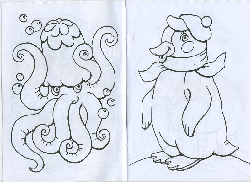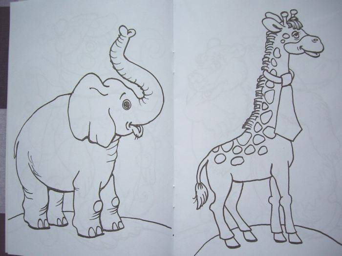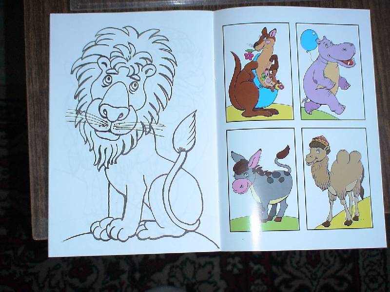 Раскраска понравилась. Нарисованы следующие животные для раскрашивания: пингвин, жираф, ежик, бабочка, кенгуру, бегемот, ослик, верблюд, павлин, осьминог, слон, медведь, крокодил, зебра, бабочка, волк, лев. Цветные образцы есть не ко всем рисункам, а примерно к половине. Звери нарисованы в целом симпатично и очень даж...