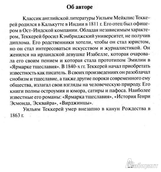 Читала эту книгу на русском языке - безумно понравилась.Читается на одном дыхании и сильно увлекает...Хотя это и единственное произведение Теккерея оно стоит десятка.Теперь с удовольствием почитаю в оригинале)))