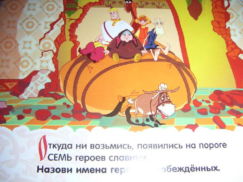 На каждом развороте приведен текст из мультфильма с использованием той или иной цифры, а также вопрос по мультику.