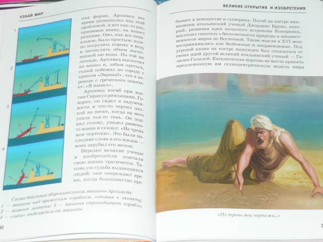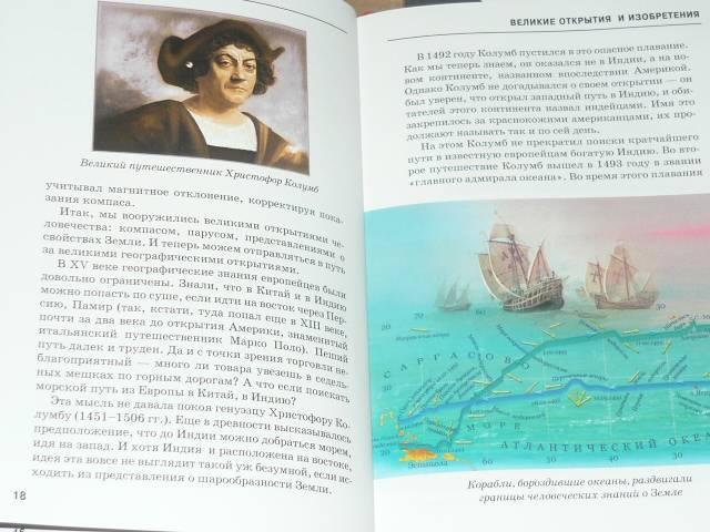 Давно отложила книги этой серии, а тут ребенку задали на каникулы читать про великие открытия и изобретения. И эта энциклопедия пришлась как раз кстати. Множество красочных иллюстраций, интересное повествование. Минус книги - отсутствие деления на главы, части - по времени или по тематике (географические, практические...