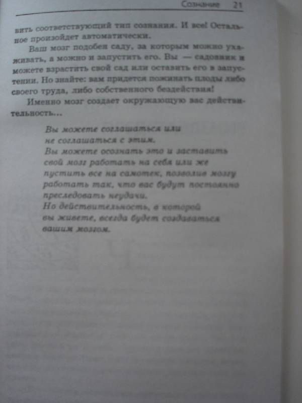 Одна из самых рекомендуемых книг по изучению или освоению техники визуализации. Книга легко читается и будет доступна пониманию тех, кто только начинает работать с данной техникой. Основная мысль автора заключается в том, что наши мысли материализуются. Однако, не стоит полагать, что все получится сразу,на раз-два-три...