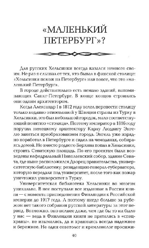 Где и когда начинаются связи между Россией и Финляндией? - Они были всегда. В этой стране повсюду чувствуется "русское присутствие". Почему? Все дело в том, что связанные с нашим общим прошлым памятники в Финляндии сохранили сам дух, атмосферу, кажется, даже запах минувшего - того, что, увы, исчезло у нас и что нельзя воссоздать самой богатой и изощренной реставрацией. Многое из того русского, что создавалось в России и что было уничтожено у нас, осталось в Стране тысячи озер - живы памятники, даже некоторые русские традиции... И самое главное - имена. Среди них - художник Илья Репин и писатель Леонид Андреев, фрейлина последней императрицы Анна Танеева-Вырубова и Аврора Карамзина, художник Николай Рерих и поэты Серебряного века - Владимир Соловьев, Валерий Брюсов, Иннокентий Анненский и Осип Мандельштам и многие-многие другие.