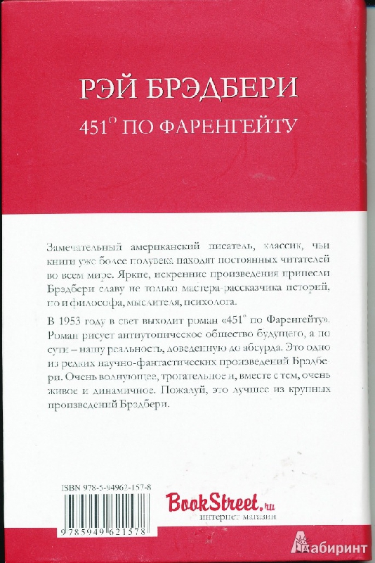 Роман рисует антиутопическое общество будущего, а по сути - нашу реальность, доведенную до абсурда. Это одно из редких научно-фантастических произведений Брэдбери. Очень волнующее, трогательное и, вместе с тем, очень живое и динамичное. В рабочем кабинете писателя к стене прибит автомобильный номер "Р-451", притом что сам он за руль ни разу не садился.