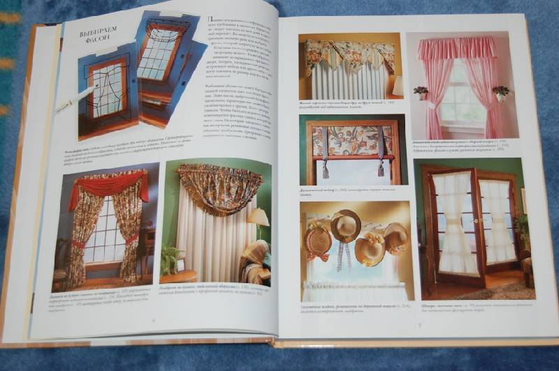Шикарно оформленная книга. Очень подробно описан весь процесс оформления окна: какие бывают виды штор (Шторы с драпировкой, экраны, римские шторы...),поэтапно расписан и проиллюстрирован весь процесс. Огромное количество доступных идей.