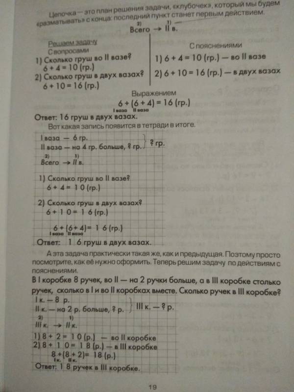 Мне очень понравилась книжка. У нас с дочкой были сложности, начиная с первого класса, с краткой записью задач. Книга помогла мне разобраться в типах простых задач и, соответственно, с их краткой записью и разъяснить подробно эти нюансы дочке. В общем, книгой ОЧЕНЬ довольна