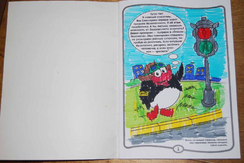 Хорошая раскраска,с иллюстрациями,что делать опасно,а что безопасно.Дети не только будут раскрашивать картинки любимых мульт героев,но и научатся правилам безопасности.
