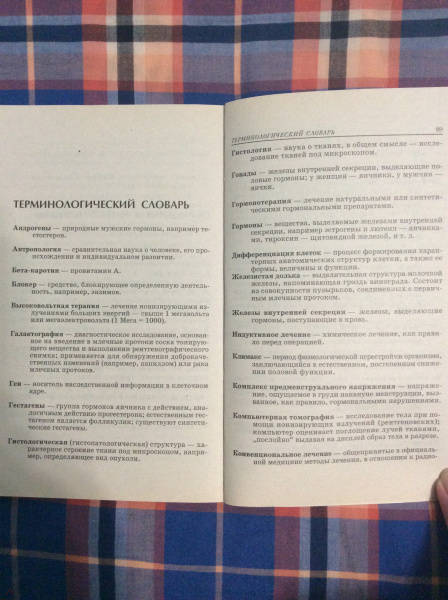 Книга написана очень простым языком. Всё про строение, болезни, самообследование и т.д. Так же в конце книги имеется словарь основных терминов.