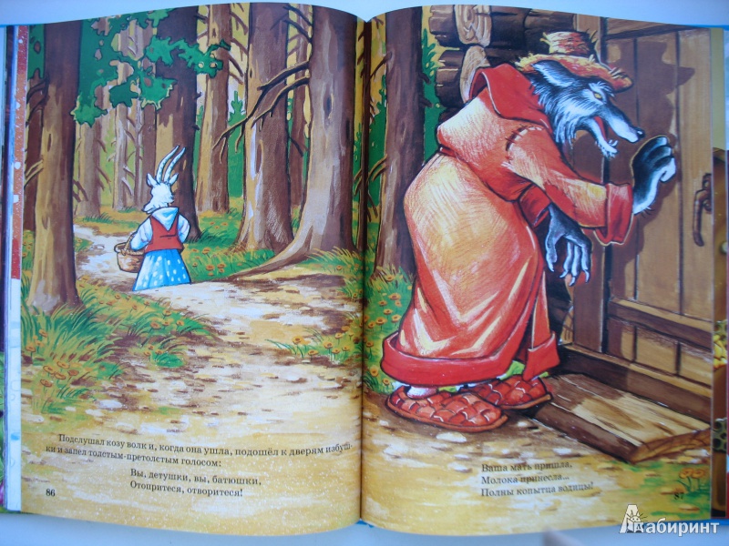 Это первая наша книга в этой великолепной серии Олма, очень понравилась яркостью рисунков, качеством бумаги и печати, хорошим читабельным текстом и самим выбором сказок. По рисункам - именно яркостью понравились, а само изображение некоторых персонажей удивляет - особенно поросят (три поросенка) и людей (в Красной шап...