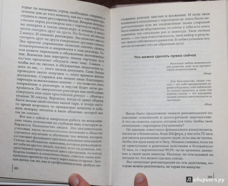 Купила эту книгу по совету своей знакомой, при чтении обнаружила много оригинальных ответов на свои вопросы, автор в некоторых объяснениях проблем и обстоятельств оригинален. Вообще, книга понравилась; конечно же, лучше читать ее вдвоем с партнером, а если спасение семьи/отношений - желание и дело рук одного человека,...
