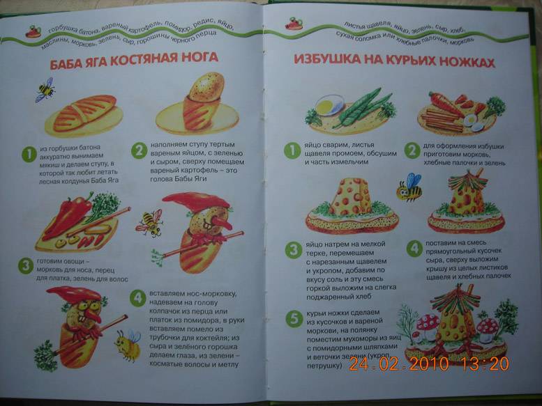 Такие бутерброды, которые описаны в книге несъедобные (на куске хлеба целая картошка или целые морковки с тыквой и т.д.). Такая книжка может пригодиться (в детском садике или в 1-м классе) для поделок из овощей.