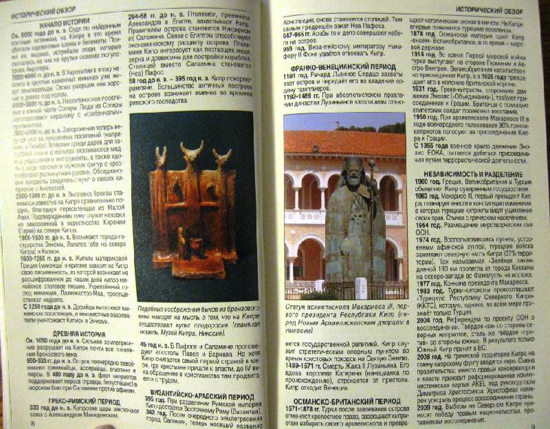 Исторический обзор приводит важнейшие события из истории Кипра. Все главные достопримечательности острова перечислены в одном кратком списке с комментариями. Описаны маршруты и по Южному, и по Северному Кипру. Отдельные очерки посвящены мифологии и литературе Кипра и кипрской кухне.