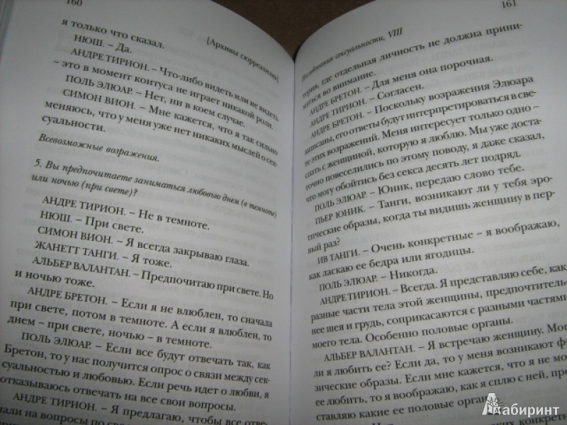 12 встреч-диалогов Андре Бретона и ряда его соратников по движению сюрреализма (Арагона, Арто, Рэя, Танги, Элюара...), имевшие место в период с января 1928 по август 1932 г., должны были способствовать выработке прямого, помимо психоанализа и метафизики, отношения их участников к собственной сексуал