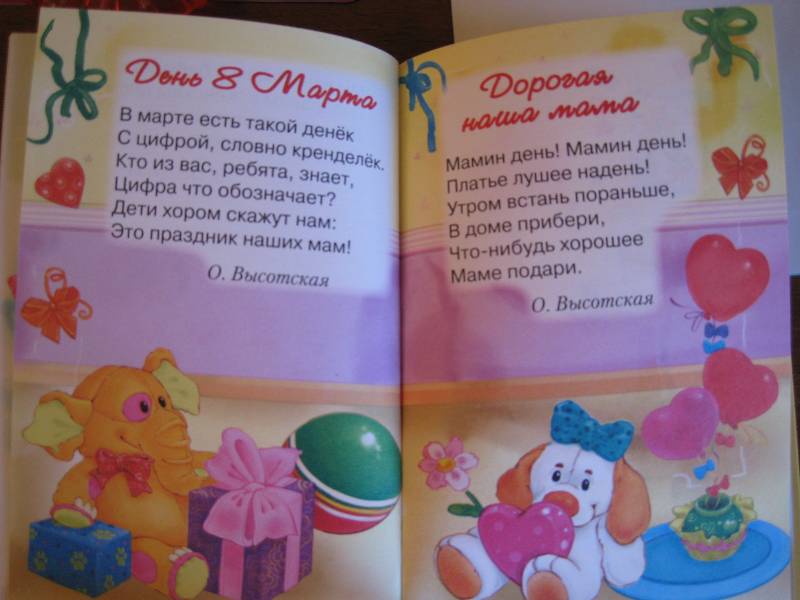 Отличная книжечка! Моя почти трех летняя дочка из этой книги любит стишок “Посидим в тишине”, сама открывает нужную ей станицу и начинает рассказывать его! Хорошие картинки, добрые стихи!