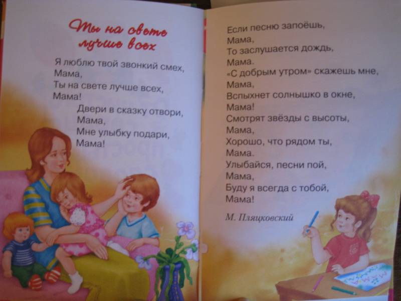 Замечательный сборник стихов, адресованных маме, бабушке, сестренке. Иллюстрации очень приятные, пастельные. Небольшой формат, потому и в дорогу можно взять, бумага белая, плотная. Детям всё нравится. Советую!:)