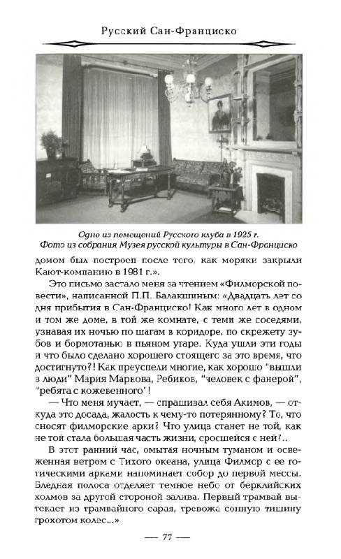 Книга, которую вы держите в руках, - своеобразный путеводитель по местам, связанным с русской эмиграцией в Сан-Франциско. Автор описывает более чем 200-летнюю историю русского пребывания в этом городе. Рассказывает о жизни русских американцев в разные периоды истории. Как русские обустраивали Сан-Фр