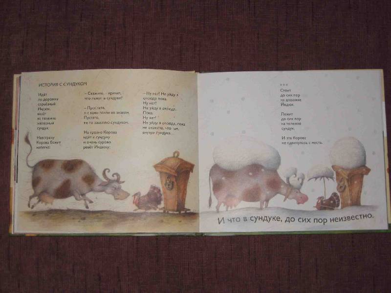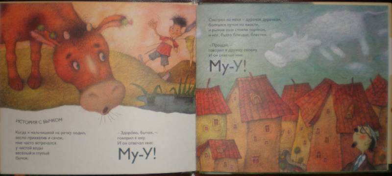 вытянутый в ширину формат, картонная обложка с глянцевыми буквами, хороший жирный шрифт, очень хорошая полиграфия и иллюстрации Антоненкова.