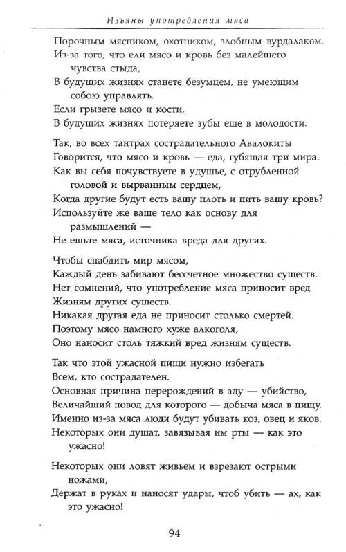 Опираясь на учения Будды, Шабкар, знаменитый тибетский учитель и мастер медитации XVIII-XIX вв., аргументировано и страстно отстаивает принцип воздержания от употребления в пищу мяса как неотъемлемый аспект буддизма Махаяны. Способствующая развитию глубокого сострадания ко всем живым существам, книг
