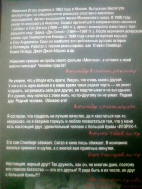 Сегодня Игорь Жижикин - один из самых востребованных русских актеров в Голливуде. А когда-то он был просто артист воздушного жанра Московского цирка, который в 1990 году уехал по контракту в Америку. Где стал солистом американского мюзикла в Лас-Вегасе, артистом всемирно известного театрального шоу Цирк "Дю Солей". С 1999 года начал актерскую карьеру в Лос-Анджелесе. Об этом и не только его книга.