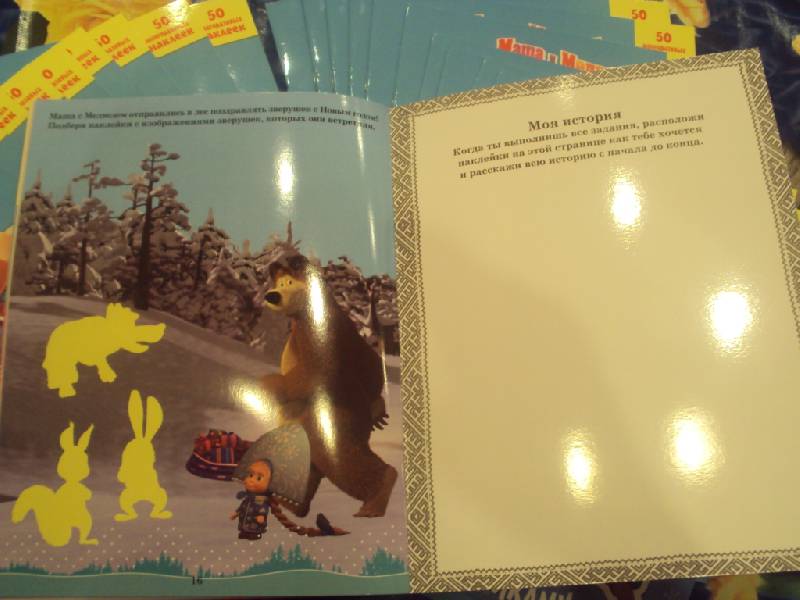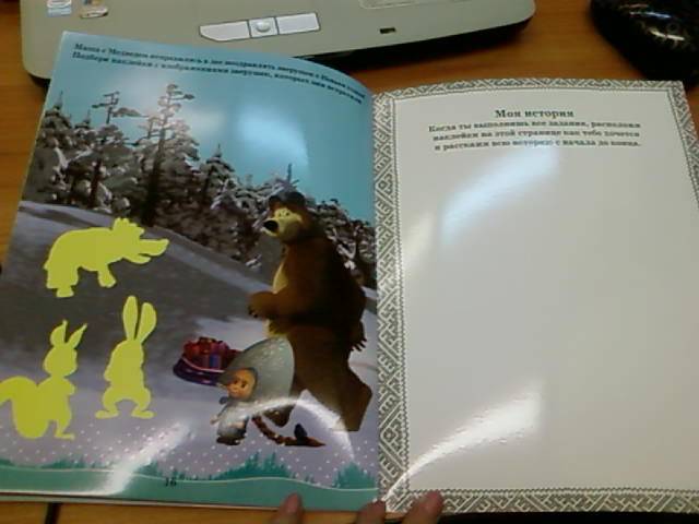 Большинство заданий выполняет вместе с мамой, но и самостоятельно уже может посидеть с центральным разворотом, понаклеивать героев мультика на пейзаж. Все задания ребенку в 1,5 года уже вполне понятны и дост...