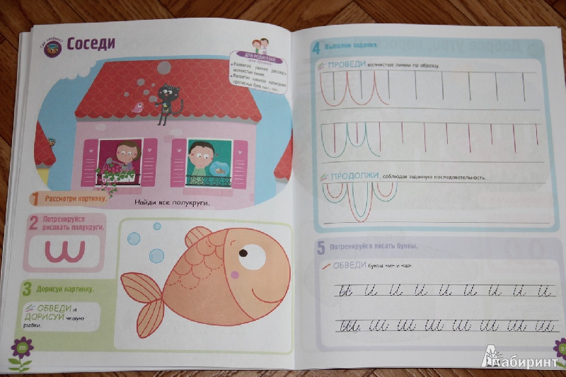 Данная развивающая книжка пригодится малышам от четырёх лет для подготовки к школе. Задания для подготовки руки к письму весьма интересные и разнообразные. Качество очень достойное: обложка из плотного глянцевого картона, страницы плотные офсетные, иллюстрации довольно приятные.