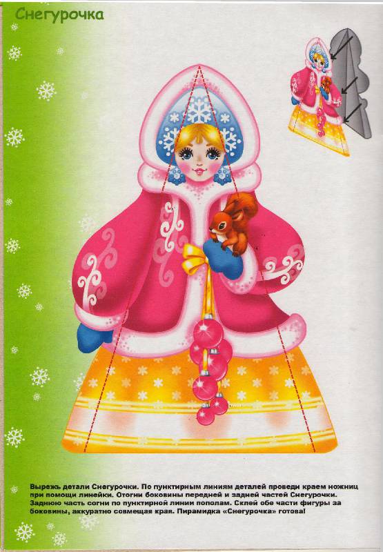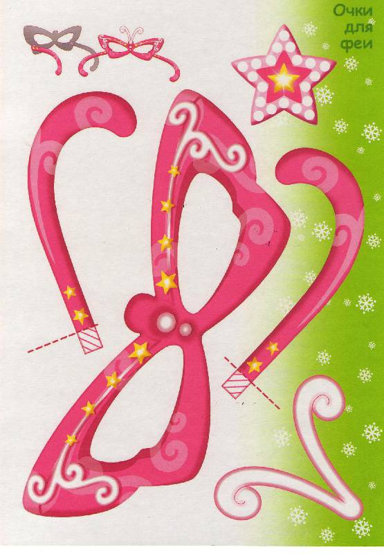 В книжечке предлагается вырезать и сделать: гирлянду из розовых слоников,Деда мороза,колпачок и карнавальные очки для феи, 2 мешочка для подарочка и Снегурочку