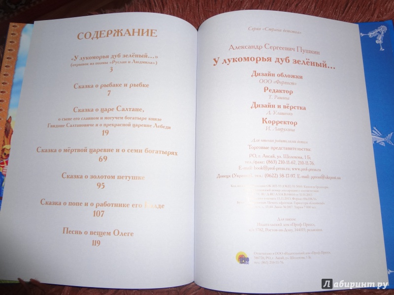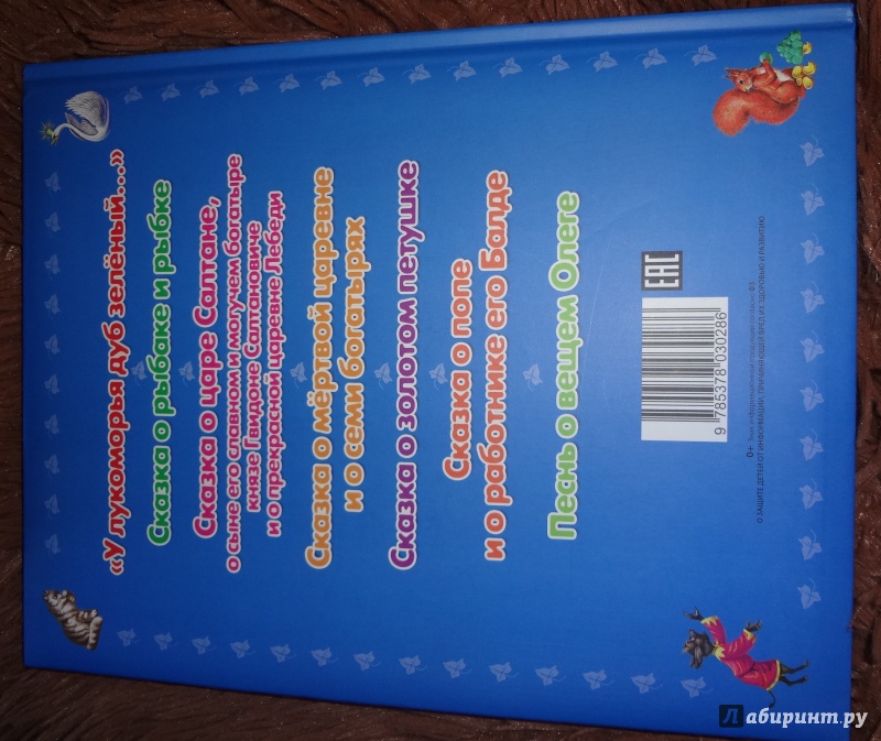 Это замечательная книга для первого знакомства ребёнка с творчеством Александра Пушкина! В неё вошли отрывок из поэмы "Руслан и Людмила", "Сказка о рыбаке и рыбке", "Сказка о царе Салтане...", "Сказка о мёртвой царевне и о семи богатырях", "Сказка о золотом петушке", "Сказка о попе и о работнике его