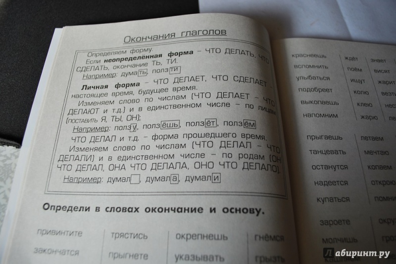 Стр.10 пятая строчка сверху. Смотрим правило: ДУМАТЬ - окончание ТЬ ? Это суффикс неопределенной формы глагола! Программа 3 класса русского языка. Прежде чем купить - советую внимательно присмотреться, особенно если даете ребенку для самостоятельного изучения. Возможно использовать книгу как сборник примеров, но невер...